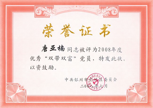 唐亞楠被評為“雙帶雙富”黨員