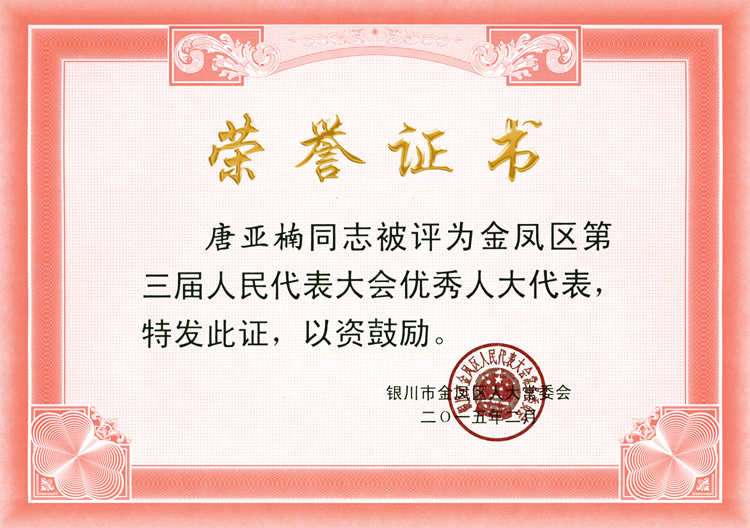 總經(jīng)理唐亞楠被評(píng)為金鳳區(qū)三屆人大優(yōu)秀代表