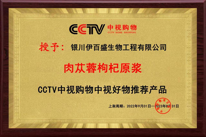 肉蓯蓉枸杞原漿成為CCTV中視購物中視好物推薦產品