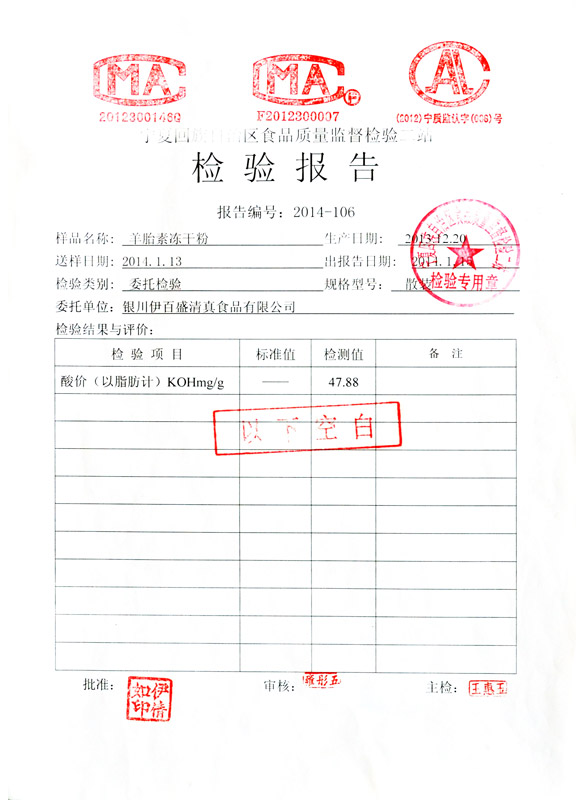羊胎素凍干粉檢驗報告書
