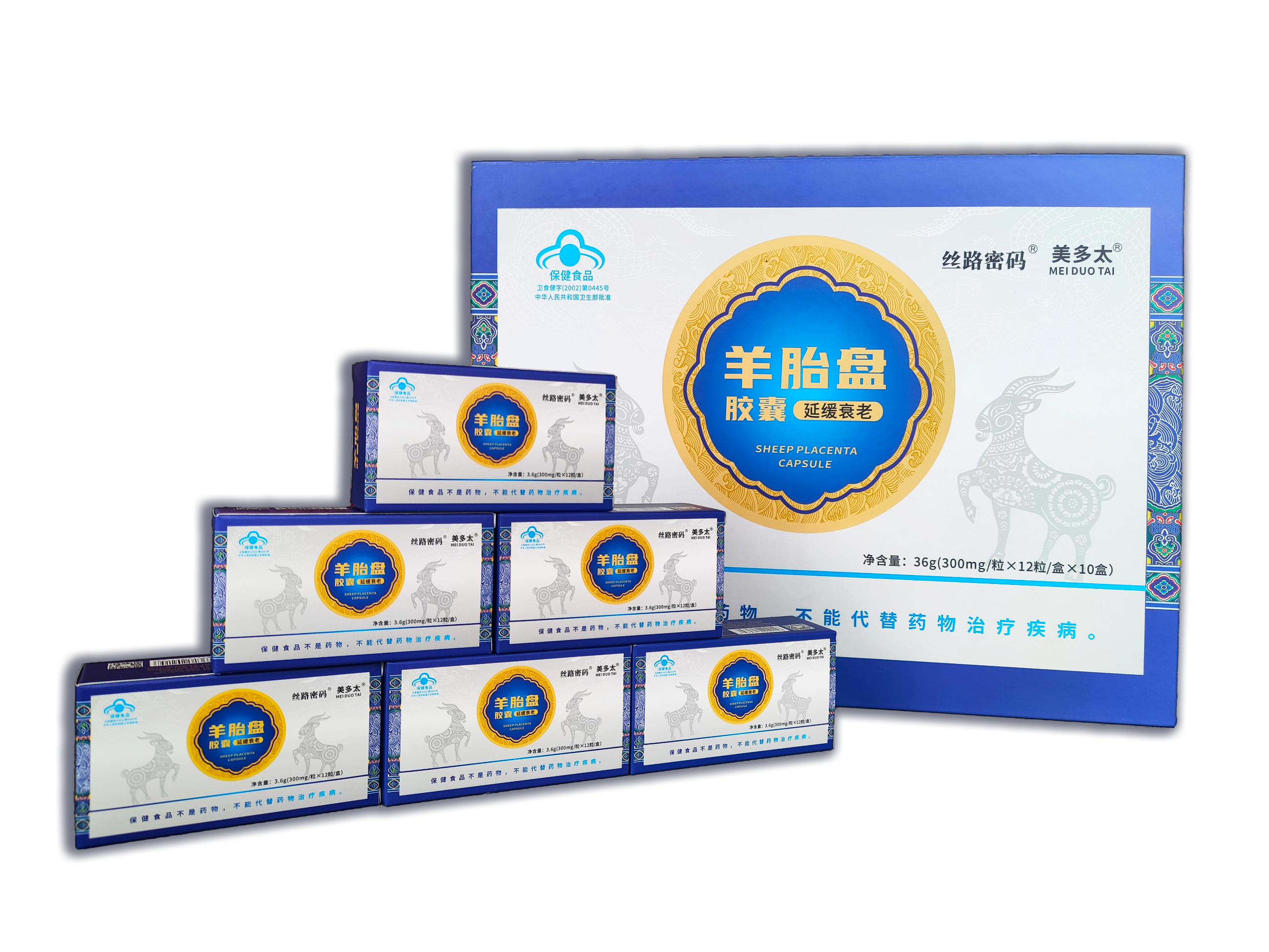 本品是以羊胎盤、淫羊藿、菊花、紅花為主要原料制成的保健食品,經(jīng)功能試驗(yàn)證明,具有延緩衰老的保健功能。