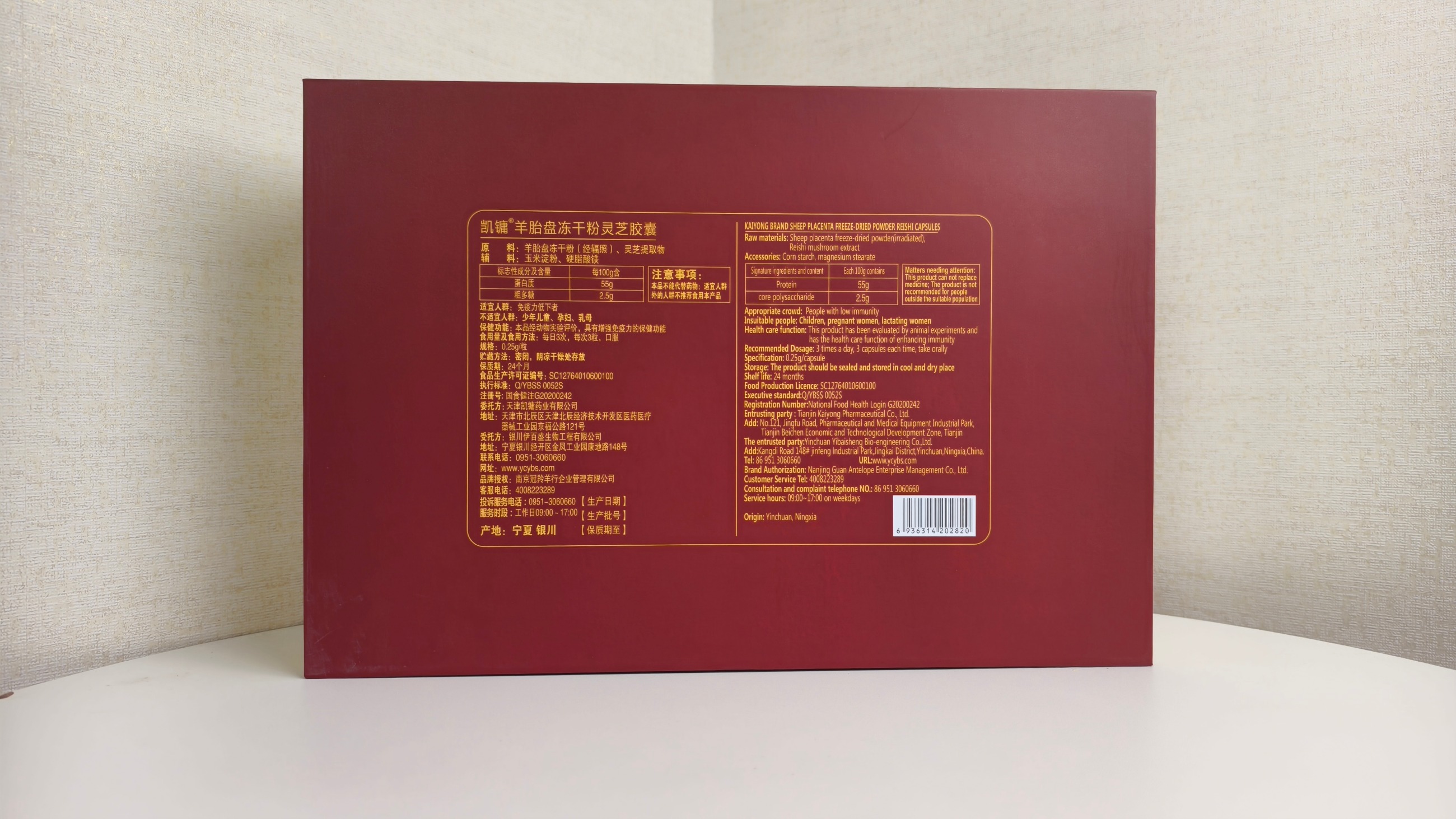 【原料】羊胎盤凍干粉(經輻照)、靈芝提取物