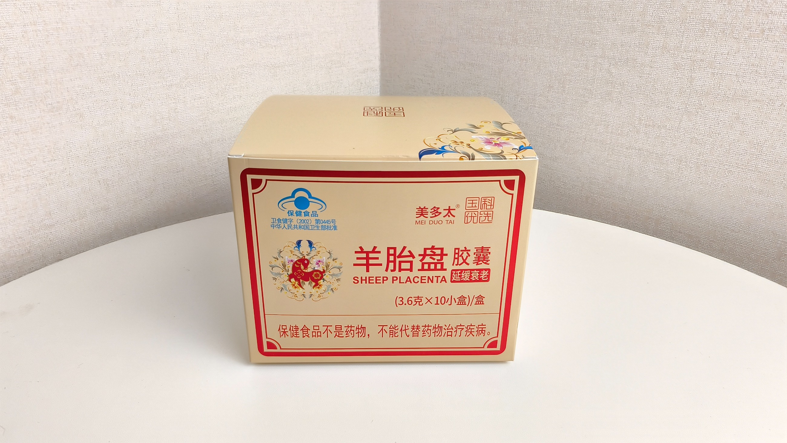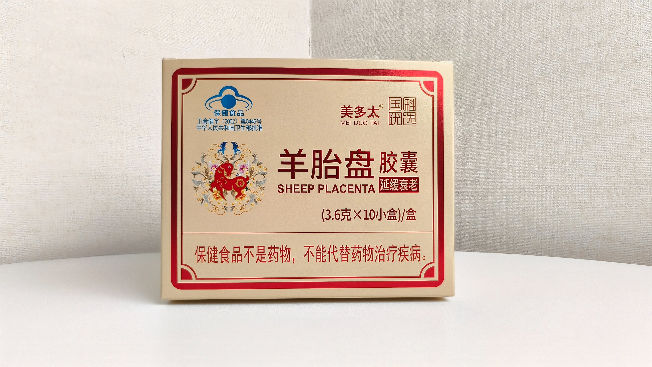 本品是以羊胎盤、淫羊藿、菊花、紅花為主要原料制成的保健食品,經功能試驗證明,具有延緩衰老的保健功能