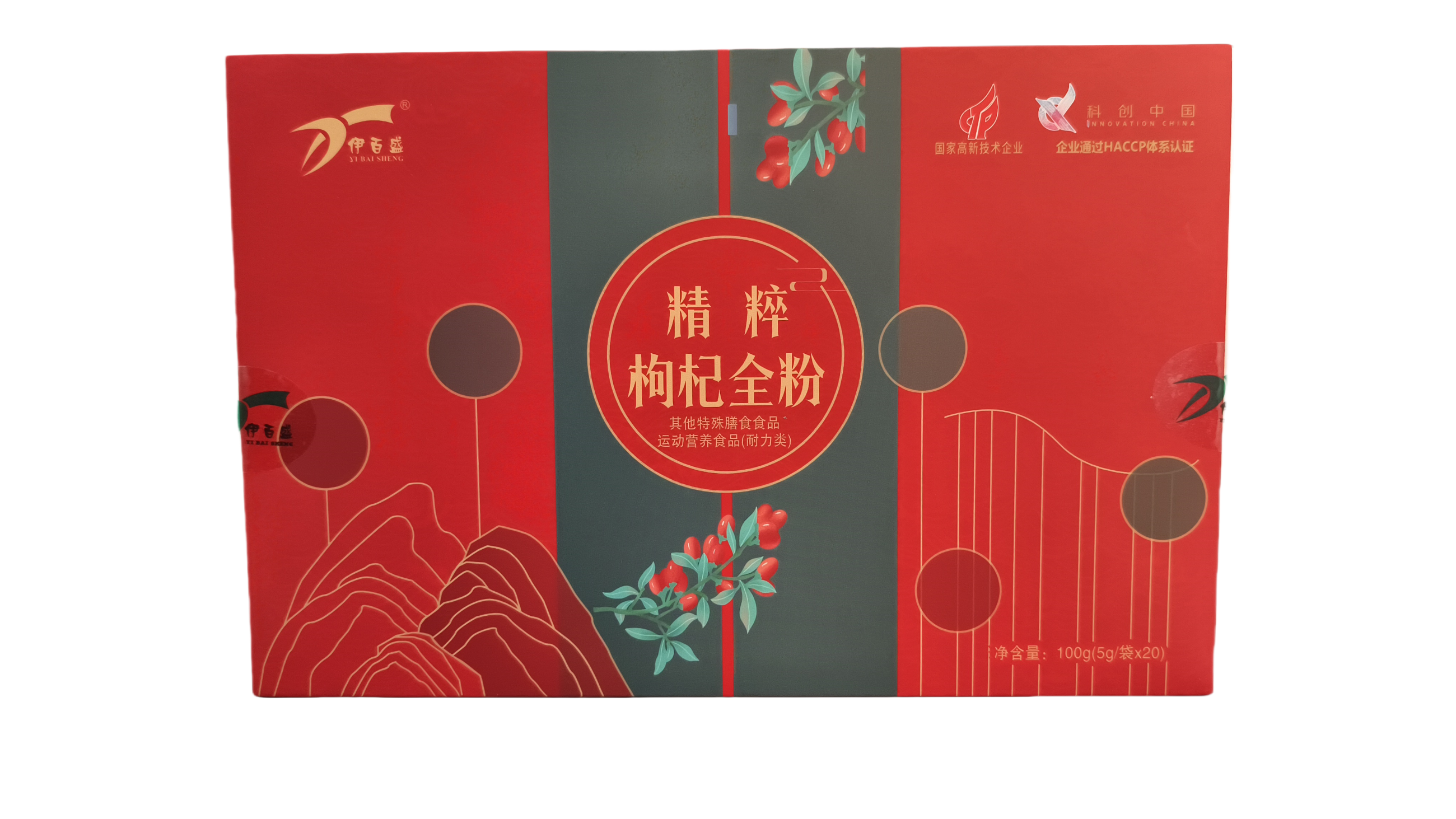 食品名稱:精粹枸杞全粉配料:枸杞全果粉、蜂蜜粉、低聚果糖、牛磺酸、維生素C、無水檸檬酸、維生素B1、維生素B2食用方法及食用量:可直接吞服,也可準備60℃左右溫開水約50m1,倒入1袋攪拌均勻飲用。每日2次,每次1袋適宜人群:適合需要提高耐力的人群不適宜人群:孕婦、哺乳期婦女及嬰幼兒保質期:24個月執行標準:Q/YBSS 0070S食品生產許可證編號:SC12764010600100貯存條件:密封、請置于陰涼干燥處存放產地:寧夏銀川